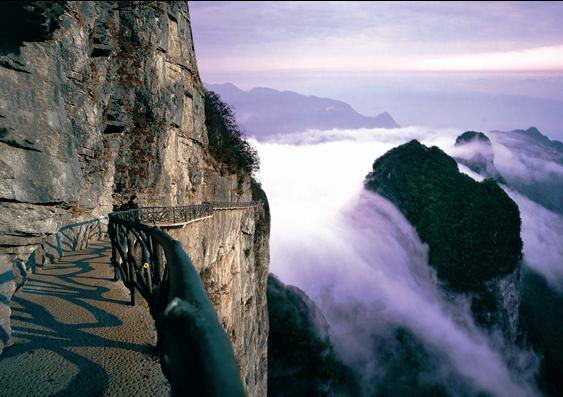 如果是雨前雨后,在棧道上則是身邊霧氣盤繞,腳下云海翻騰,令人抬腿似生霧,邁步如踏云,人間天界,世外洞天也就是如此了.