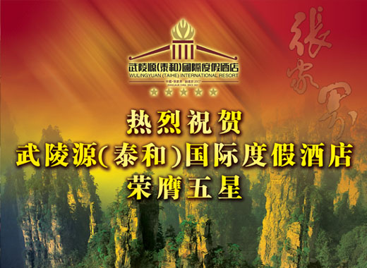 張家界武陵源國(guó)際度假酒店于二00八年九月一日順利通過國(guó)家評(píng)審,九月十一日正式榮膺國(guó)家五星級(jí)旅游飯店。