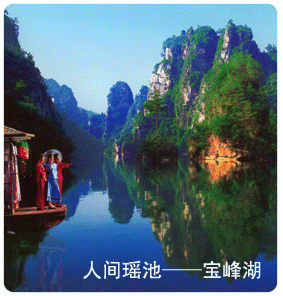 世界自然遺產(chǎn)------寶峰湖:被稱為世界湖泊經(jīng)典,地處張家界武陵源風(fēng)景名勝區(qū)的核心地帶,距天子山8KM,距武陵源區(qū)政府1.5KM,距黃龍洞8KM。寶峰湖風(fēng)景區(qū)集山水于一體,融民俗風(fēng)情于一身,尤以奇秀的高峽平湖絕景、飛流直下三千尺的寶峰飛瀑、神秘的深山古寺聞名。