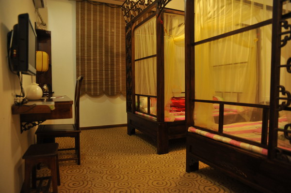 仿古家具以及配備高檔的現(xiàn)代化衛(wèi)浴和電器設施,隔音防噪。獨立衛(wèi)生間、24小時熱水、冷暖空調(diào),以及無線上網(wǎng)。