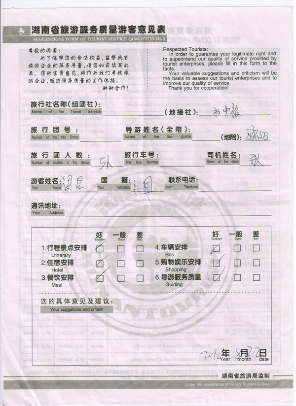 香港梁君一行5人旅游質(zhì)量回饋:安排的一切都好!