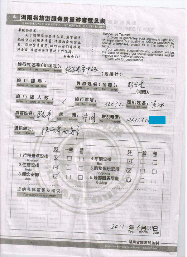 西安李先生一行6人旅游質(zhì)量回饋