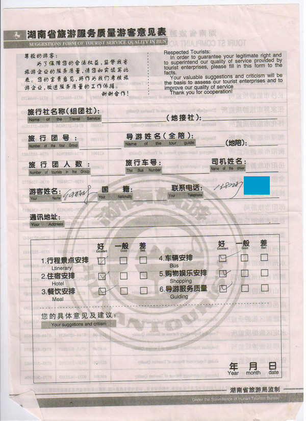 廣東何先生一行8人旅游質(zhì)量回饋