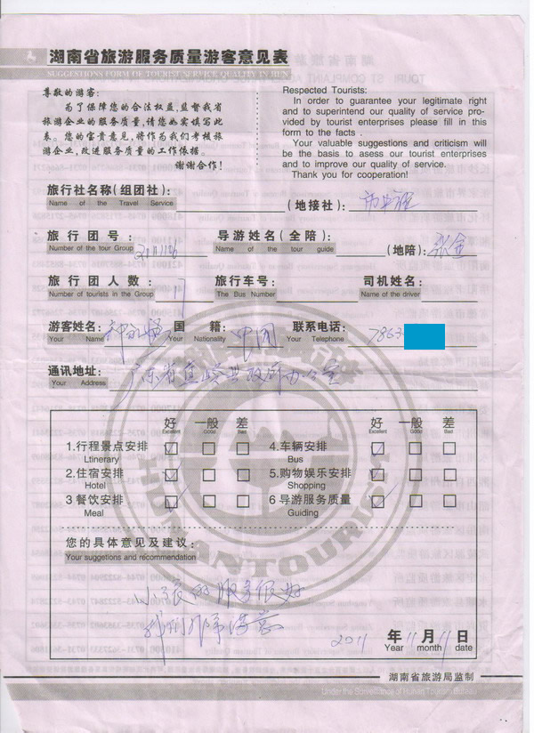 廣東鐘先生一行17人旅游質(zhì)量回饋