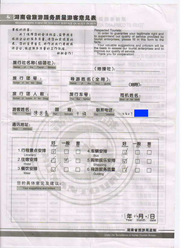 香港陳女士一行5人旅游質(zhì)量回饋: