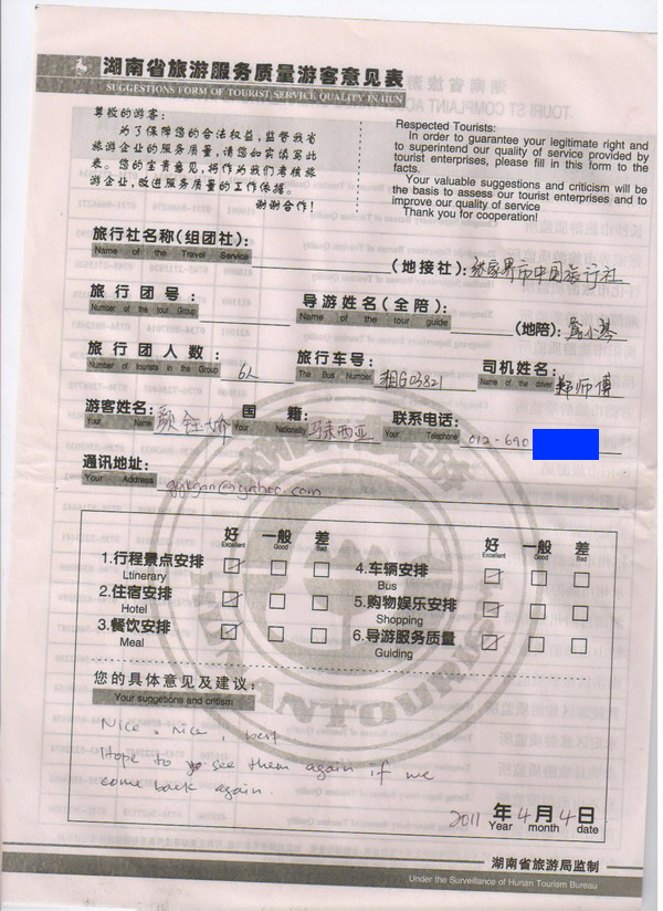 馬來(lái)西亞顏小姐一行6人旅游質(zhì)量回饋
