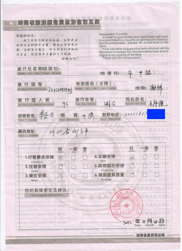 河北李女士一行9人旅游質(zhì)量回饋