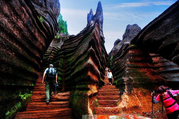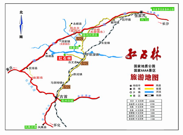 紅石林國家地質(zhì)公園位于湘西自治州宋祖英的家鄉(xiāng)——古丈縣境內(nèi)。紅石林國家地質(zhì)公園是張家界至鳳凰旅游黃金走廊上的一顆明珠,是中國唯一的紅色碳酸鹽石林,與“芙蓉鎮(zhèn)”隔酉水河相望,景區(qū)集巖溶、峽谷、溶洞、湖泉、瀑布于一體,具有極高的地質(zhì)科研、美學(xué)觀賞和旅游景觀價值,被譽(yù)為“武陵第一奇觀”。2005年被國土資源部授予國家地質(zhì)公園稱號,2006年被評為山水人文類的“新瀟湘八景”之一的“酉水畫廊”,2013年榮膺“中國最美地質(zhì)公園”評選第一名,2013年被評為國家4A級旅游景區(qū)。