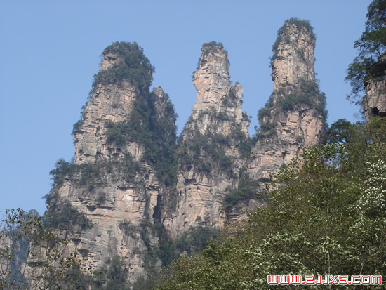三姐妹峰 雄師回頭隔溪相望,3座石峰修長俊秀,如三位窕 窈淑女。相傳三女分別為向王三兄弟之妻。三兄弟遇難后,她們誓 死不再嫁,化為三座石峰守候在神。