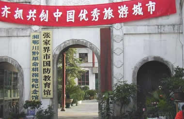 歡迎各位來賓到湘鄂川黔革命根據地紀念館參觀。這里原系民國7年(公元1918年)芬蘭牧士建的天主 堂,3棟共15間木結構平房,四周有磚墻環(huán)護。1934年11月24日,中國工農紅軍二、六軍團在任弼時、賀龍、肖克、王震等領導下,一舉解放大庸縣城,于26日成立臨時省委,12月1日在天主堂內成立湘鄂川黔省革命委員會,領導湘鄂川黔革命根據地31個縣的反圍剿斗爭,沉重地打擊了國民黨反動派和地方封建勢力,為中華民族的解放事業(yè)作出了卓越貢獻,在中國人民革命斗爭史上寫下了光輝燦爛的一頁。為緬懷先烈功績,弘揚革命精神,中共張家界市永定區(qū)委和區(qū)政府于91年夏發(fā)動募捐修復湘鄂川黔省委、省軍區(qū)、省革命委員會舊址,并新建紀念館,于1993年12月26日落成開館。 紀念館占地面積2800平方米,其中建筑面積1600平方米。東頭是三堵矮墻圍著的一棟木平房,三間小屋曾住過任弼時、賀龍、肖克,黑漆桌上的桐油燈作證,一代英杰曾在這里徹夜運籌。西頭是可容納200余人的省委禮堂,當時省委擴大會和省直各部門的會議均在此召開,現已辟為將軍館,166位在湘鄂川黔革命根據地留下英雄足跡的新中國將帥的照片掛滿墻壁。紀念館大門左右,一字排開11間辦公室,當年3大機關13個直屬部門均在此辦公。庭院正中是根據我國著名雕塑家潘鶴的作品《艱苦歲月》鑿制而成的一尊雙人石像,小紅軍抱著高過頭頂的步槍,依偎在橫吹短笛的老紅軍膝頭,似在入神地傾聽。雕像后面是紀念館主樓,內設三個展室,陳列著223幅大型圖片和100多件革命文物,再現了根據地的光輝斗爭史,反映了根據地軍民艱苦卓絕的革命歷程和高尚情操。肖克將軍為紀念館題寫了館名。 第一部分 湘鄂川黔邊根據地的初創(chuàng) 193年11月,由于王明“左”傾路線錯誤和敵人的大舉進攻,湘鄂西革命根據地全部喪失,紅三軍在湘鄂西中央分局夏曦、賀龍、關向應的領導下不得不轉戰(zhàn)鄂川邊。 12月19日,湘鄂西中央分局聽湖北咸豐大村召開會議,決定“創(chuàng)建湘鄂川黔邊新蘇區(qū)”。此后,紅三軍在湘鄂川黔邊轉戰(zhàn),尋找立足點。 1934年5月,紅三軍西渡烏江,進入貴州。6月19日,湘鄂西中央分局在貴州沿河楓香溪召開會議,決定在黔東創(chuàng)建根據地。7月21日黔東特區(qū)革命委員會成立。黔東根據地的建立,為紅二、六軍團會師和湘鄂川黔根據地的形成創(chuàng)造了條件。 第二部分 湘鄂川黔邊根據地的全面形成 1934年10月,紅六軍團經過艱苦轉戰(zhàn),進入黔東,24日,與紅三軍在印江木黃勝利會師。會師后紅三軍恢復紅二軍團番號,兩軍團聯合行動,由賀龍、任弼時、關向應統(tǒng)一指揮。紅二、六軍團會師后,為了策應中央紅軍長征與建立湘鄂川黔邊根據地,決定發(fā)動湘西攻勢。 1934年10月28日,紅二、六軍團從四川南腰出發(fā),向湘西挺進。11月7日,攻克永順縣城,湘敵何鍵急令湘西軍閥陳渠珍派兵堵剿,陳糾集三個旅,約一萬人的兵力向永順撲來。紅軍決定采取誘敵深入、聚而殲之的作戰(zhàn)方針,主動放棄永順縣城,退至城北90里的十萬坪地區(qū)設伏。16日黃昏,尾追之敵進入伏擊圈,我軍奮起痛擊,殲、俘敵3000余人。我軍乘勝追擊,24日占領大庸、桑植。12月7日,進擊沅陵,17日包圍常德,攻下桃源。 由于湘西攻勢的勝利,促進了新區(qū)工作的發(fā)展,紅二、六軍團控制了永順、大庸、桑植的大部和龍山、保靖、桃源、慈利、常德等縣的一部,并占有大庸、桑植、永順等縣城,開辟了湘鄂川黔邊根據地。 第三部分 根據地省委的成立并領導人民開展革命斗爭 1934年11月26日,奉中共中央電示,在大庸成立了中共湘鄂川黔省委,任弼時為省委書記,賀龍、關向應、夏曦、王震、肖克及張子意、劉士杰(后叛變)、周玉珠為省委委員,同時成立省軍區(qū),賀龍為軍區(qū)司令員,任弼時為政委。還成立了省革命委員會,賀龍為主席,夏曦、朱長清為副主席。至此,以大庸為中心的湘鄂川黔革命根據地正式形成。 蘇區(qū)省委成立之后,即著手領導開展建黨建政、土地革命和擴紅等項工作,同時還進行了必要的經濟、文化教育、衛(wèi)生等方面的建設,并取得了一定的成果,推動了根據地的鞏固和發(fā)展。 第四部分 反圍剿的激烈戰(zhàn)斗 湘鄂川黔根據地的建立和發(fā)展,特別是紅軍的主動出擊,給國民黨政府造成了新的威脅,蔣介石驚恐萬分,下令調集湘鄂兩省的軍隊,集中了11個師又4個旅,共40多個團,約11萬人的兵力,編成6個縱隊,在地方保安團的配合下,對根據地發(fā)動“圍剿”。 針對敵人的瘋狂進攻,我根據地軍民,同仇敵愾,嚴陣以待。1935年1月,敵軍向根據地進攻,我紅軍主力班師大庸休整。2月上旬,紅軍在慈利設防正面阻擊郭汝棟縱隊失利,在大庸被李覺部乘機侵占。紅軍回師在大庸后坪雞公埡設伏再打李覺部縱隊失利,郭汝棟縱隊乘機占領桑植。兩個月的反“圍剿”作戰(zhàn),由于對中央軍委指示的“實行運動戰(zhàn),選擇敵人弱點,在運動中各個擊破之”的作戰(zhàn)方針理解不深,而是從正面迎擊敵人,以至一再受挫,根據地不斷縮小,紅軍處境日益困難,二、六軍團領導決定向北轉移。4月12日,紅軍從塔臥、龍家寨向北撤退。這時,鄂軍第五十八師第一七二旅進駐陳家河與我軍遭遇,該敵貪功冒進,孤軍深入,紅軍抓住戰(zhàn)機,于14日予以全殲。敵師部和第一七上旅慌忙逃竄。次日