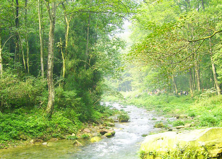 那么金鞭溪究竟美在哪里呢?慢慢往下看吧!金鞭溪全長大約7.5千米,沿途有著名景點(diǎn):閨門巖、觀音送子、金鞭巖、神鷹護(hù)鞭、醉羅漢、師徒取經(jīng)、劈山救母、長壽泉、文星巖、雙龜探溪、秀才藏書、豬八戒背媳婦、紫草潭、千里相會、跳魚潭、重歡樹、駱駝峰、水繞四門等等。而且在這里有著清新的空氣,曾經(jīng)有一個(gè)外國人把這里的負(fù)離子作了一個(gè)比喻,他說把這里一立方厘米的負(fù)離子變成錢的話,可以值很多美圓呢!所以,朋友們要是嫌張家界248的門票貴了的話,你不防多吸幾口,把錢給賺回去。要是你還怕賺不回的話,沒關(guān)系,你用個(gè)干凈的塑料袋多裝點(diǎn)兒,帶回去了再吸,比你在市場上買的氧力得要好多了哦!純天然無污染的呢!只是金鞭溪最美麗也最精華的是前半程(也就是金鞭溪的起點(diǎn)到千里相會處),那在這里肯定就還有個(gè)后半程(也就是千里相會到水繞四門了)。